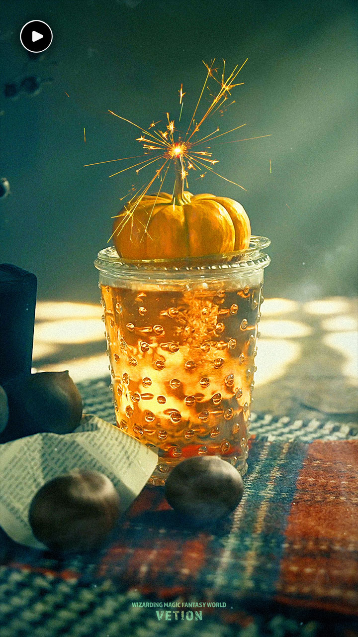 Take a sip, and you’ll hear a sparkling crackle, like tiny fireworks in your chest. In the very next moment, a little glowing pumpkin drifts gently above your head. It may grin mischievously, widen its eyes in surprise, or even give you a playful wink— each taste brings a different expression to life. When it bursts with a crisp pop, glowing fragments scatter through the air, wrapping everyone around in the atmosphere of a joyful festival.