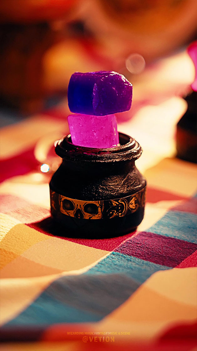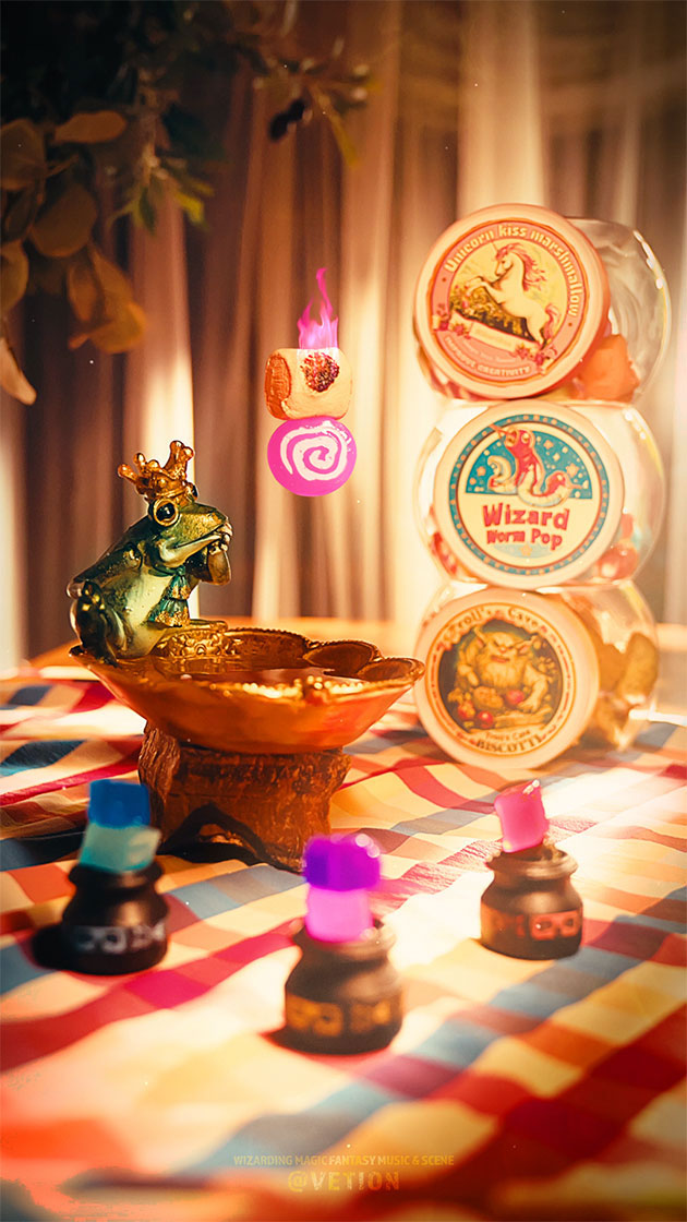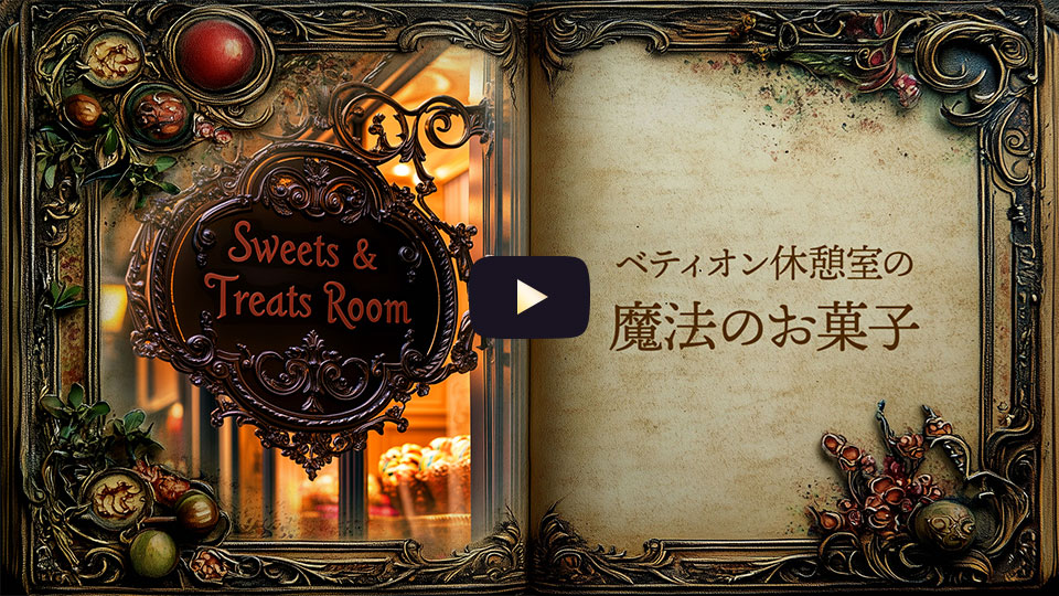魔法ラボにある休憩室「スイーツ&トリーツ ルーム」。そこは、魔法ラボで日々研究や調合に勤しむ魔法使いたちが、ひと休みしながらひらめきとワクワクを得る特別な空間。並ぶのは不思議な魔法菓子たち──。空に浮かぶマシュマロ、甘さを増幅するキャンディ、そして訪れる者を楽しい気分にさせるトリーツ。軽やかな音が響くASMRとファンタジーな魔法音楽に包まれながら、魔法菓子がもたらす小さな冒険の時間をお楽しみください。