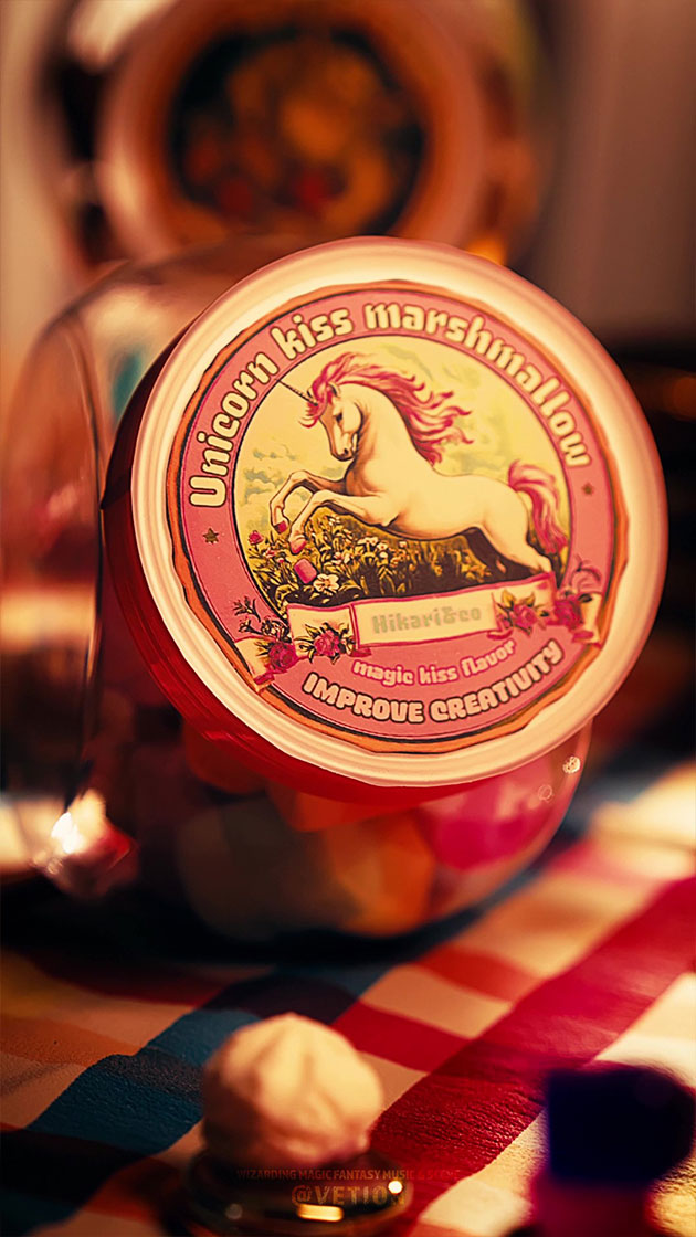 ☞ 魔法のお菓子 「ユニコーンキッスマシュマロ」 食べると創造力が高まり新しいアイデアが次々と浮かぶマシュマロ。約2時間効果が持続。